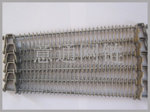 鏈條型輸送網帶是現國內主要的一種輸送形式,主要由兩側附帶各種規格的鏈條,中間加裝連接穿桿,加強輸送帶整體的負荷能力,根據不同的輸送要求,中間加裝各種形式的螺旋型金屬輸送帶,連接鏈鉤,連接沖片、鏈板等達到很好的運載和輸送效果。